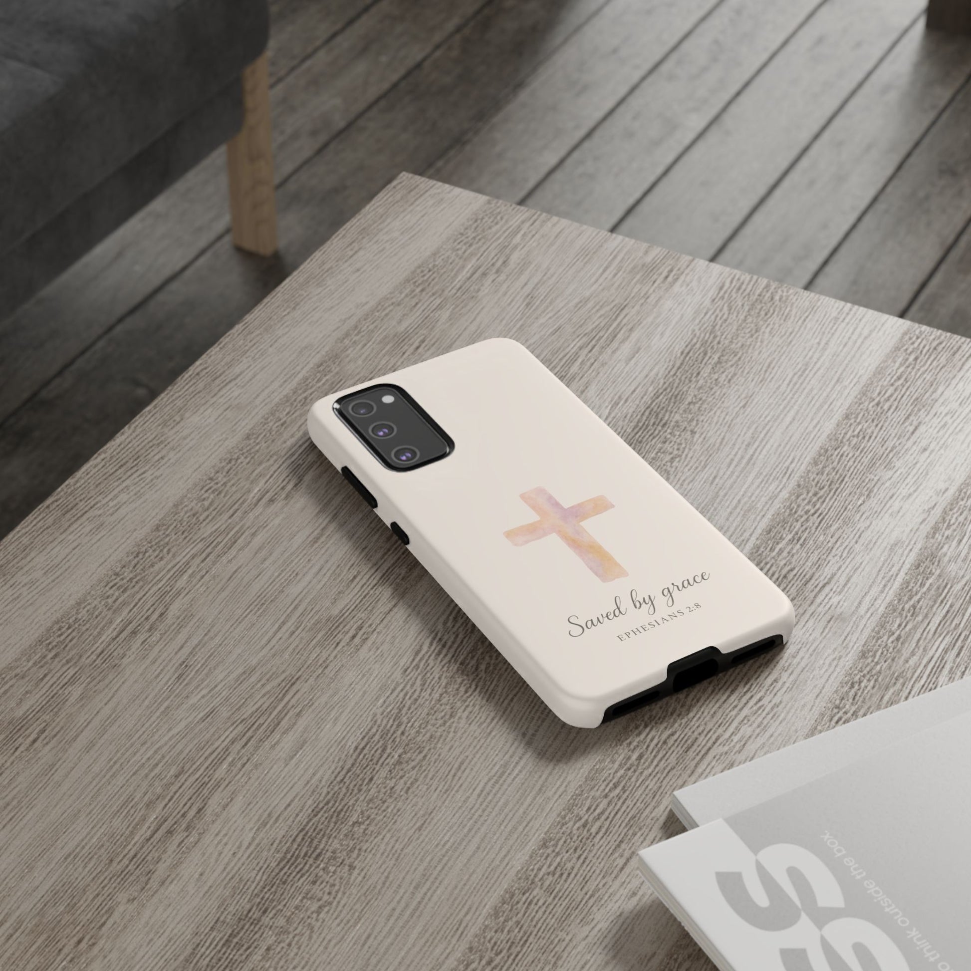 Not by works, not by perfection—saved by grace alone. This soft watercolor cross design is your daily reminder that you don't have to earn God's love; you already have it.