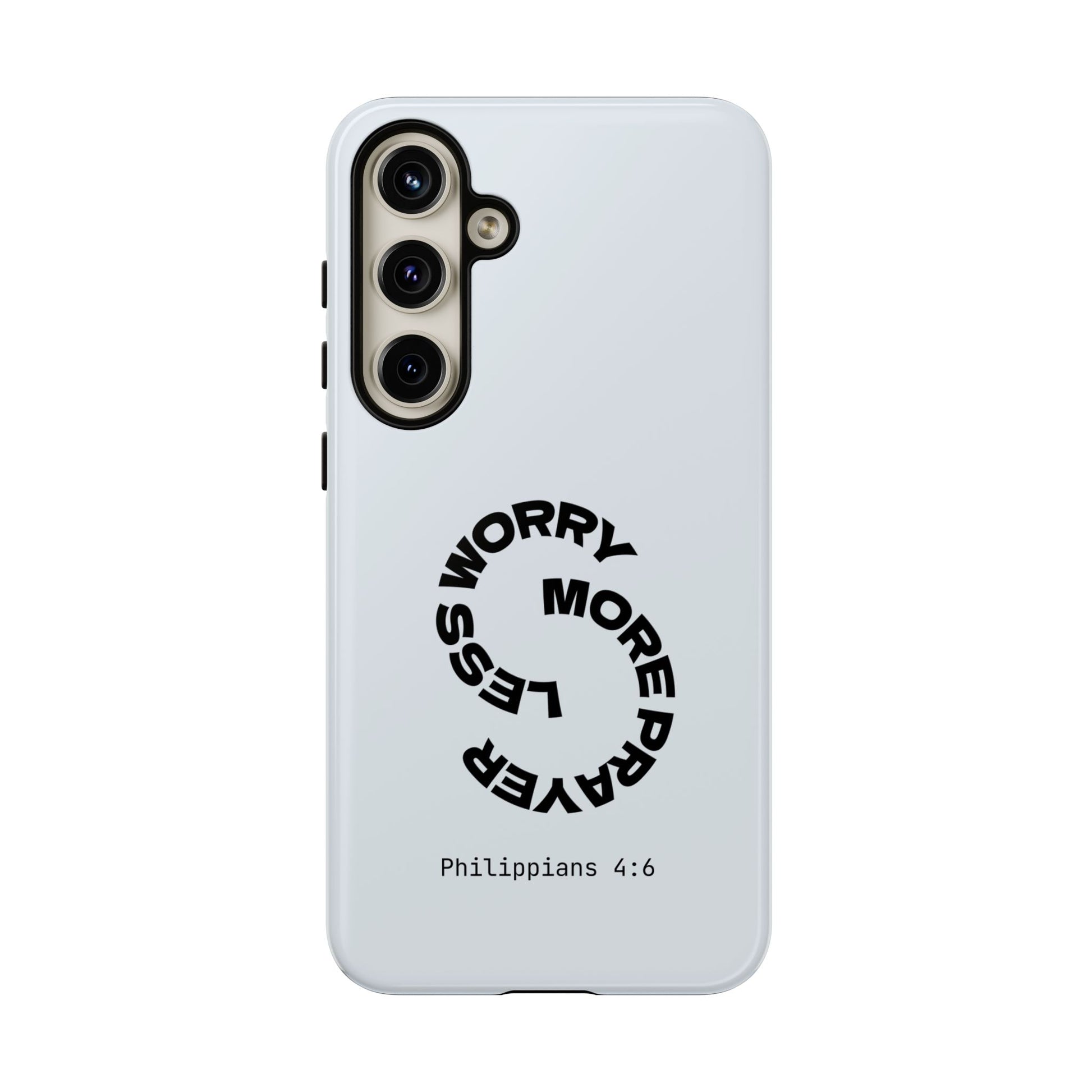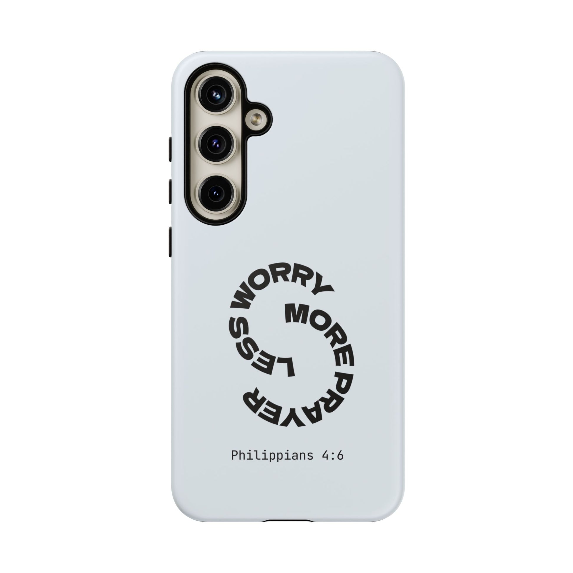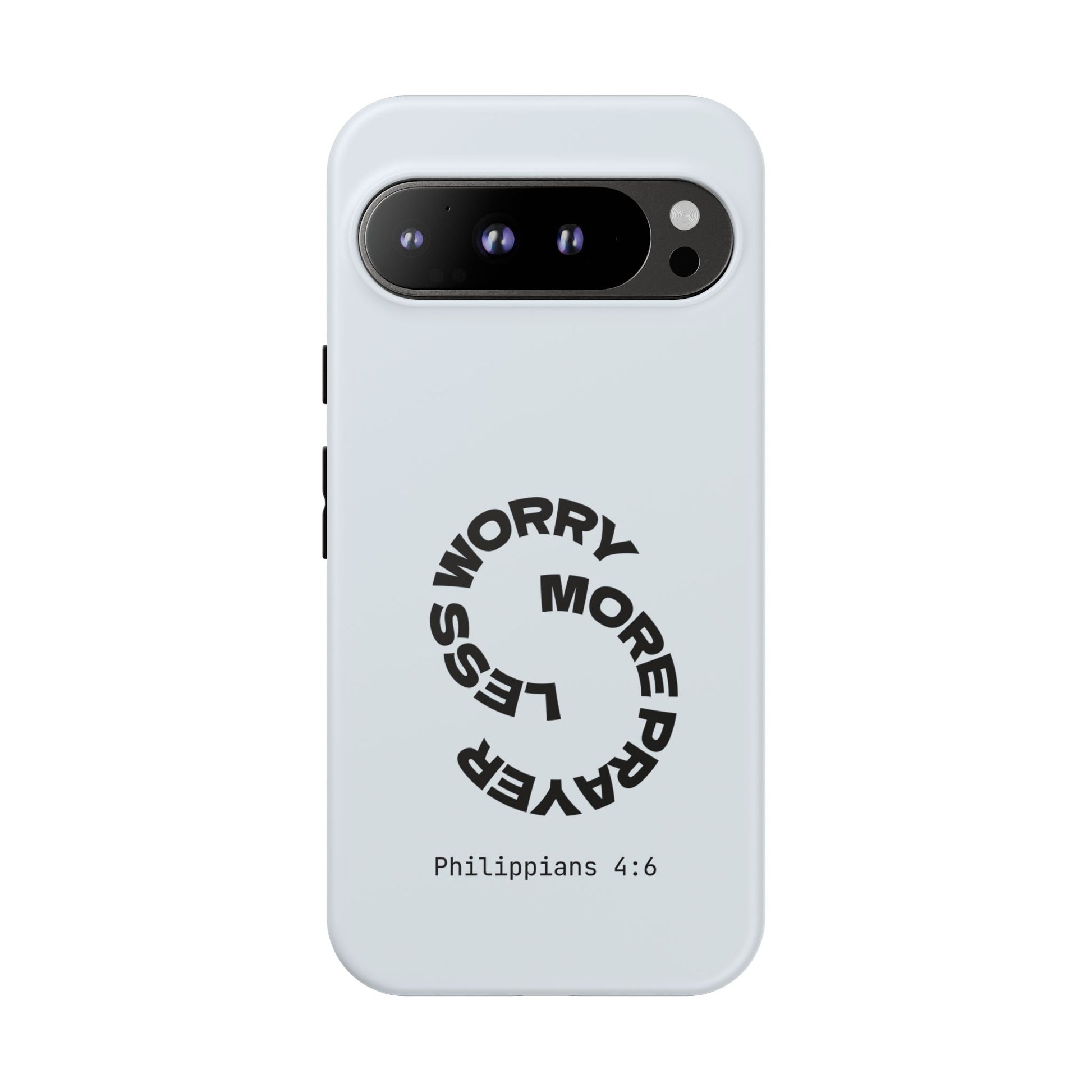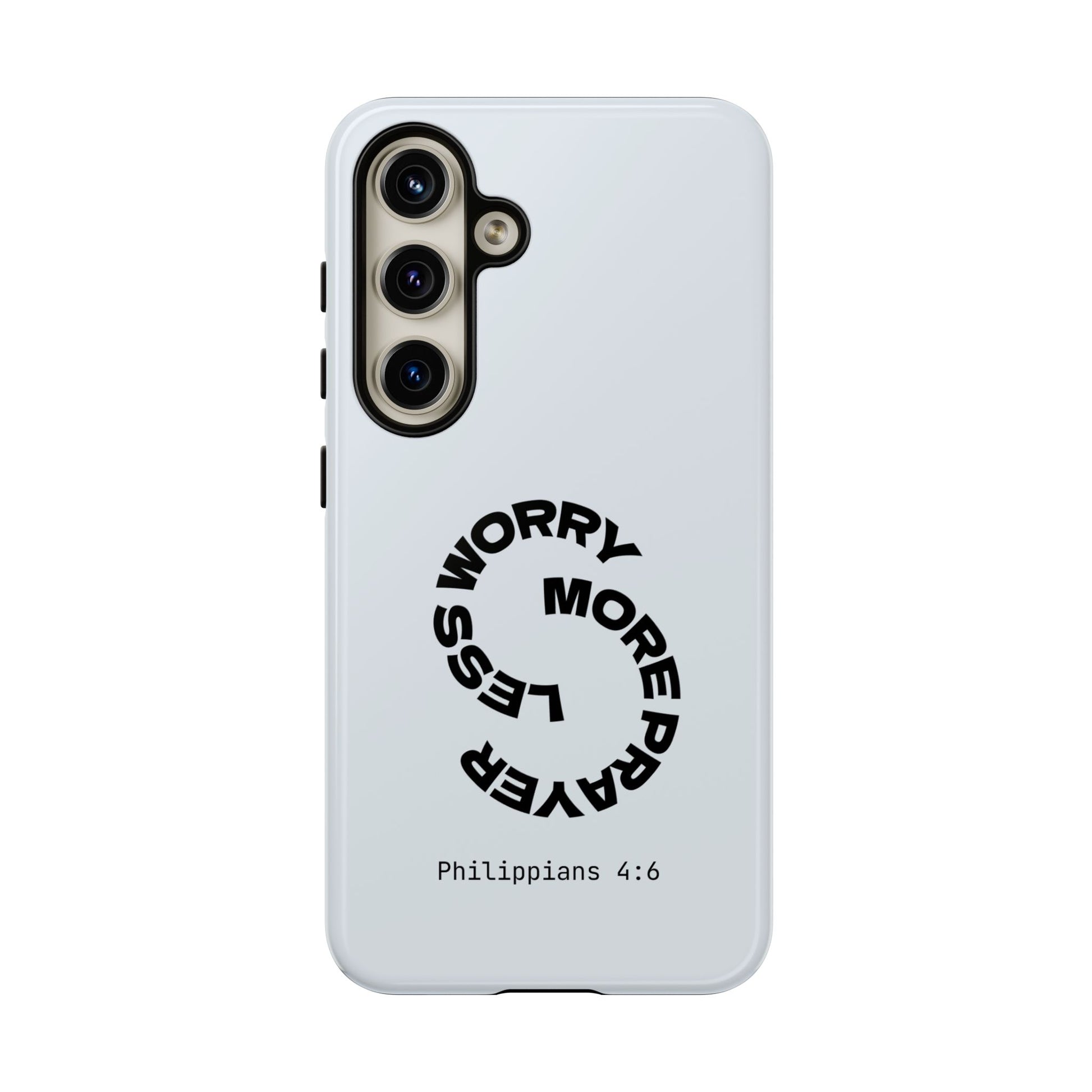 "Do not be anxious about anything, but in every situation, by prayer and petition, with thanksgiving, present your requests to God." — Philippians 4:6. This bold, modern design interrupts your scrolling to remind you: worry changes nothing, but prayer changes everything.
