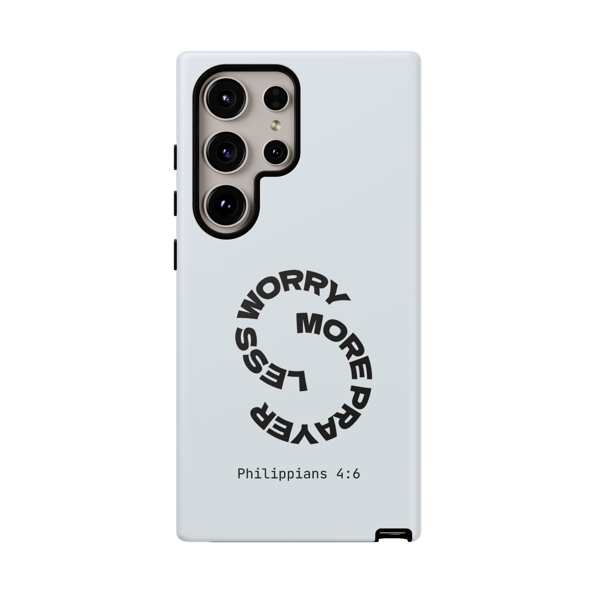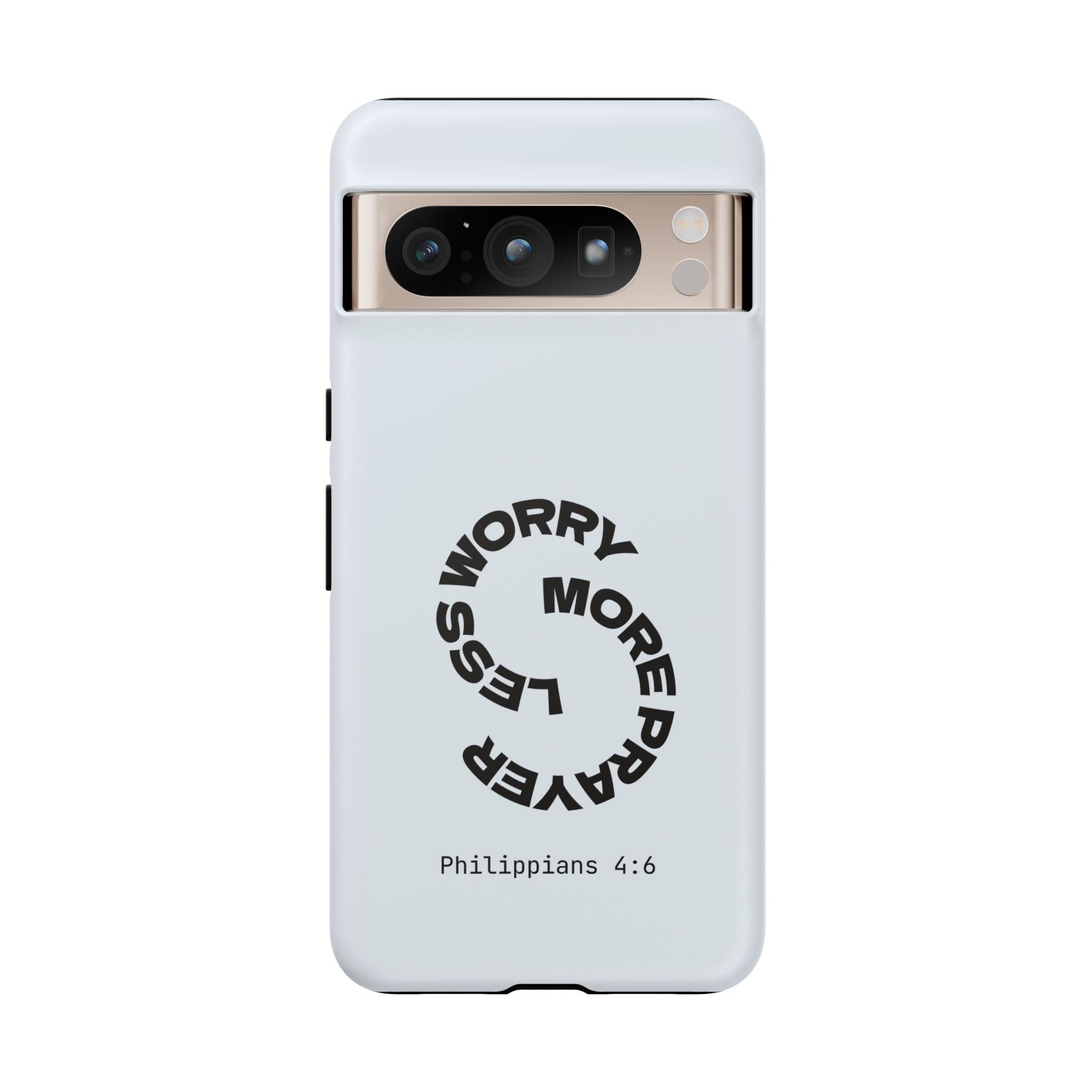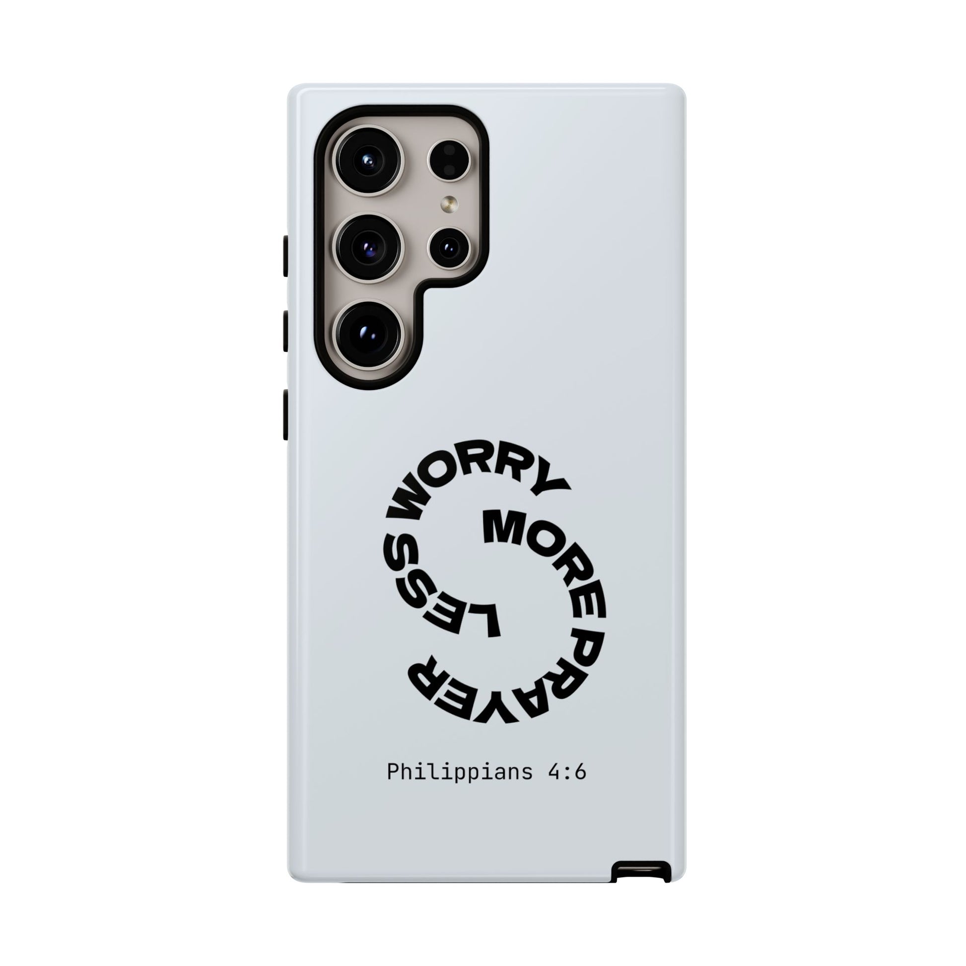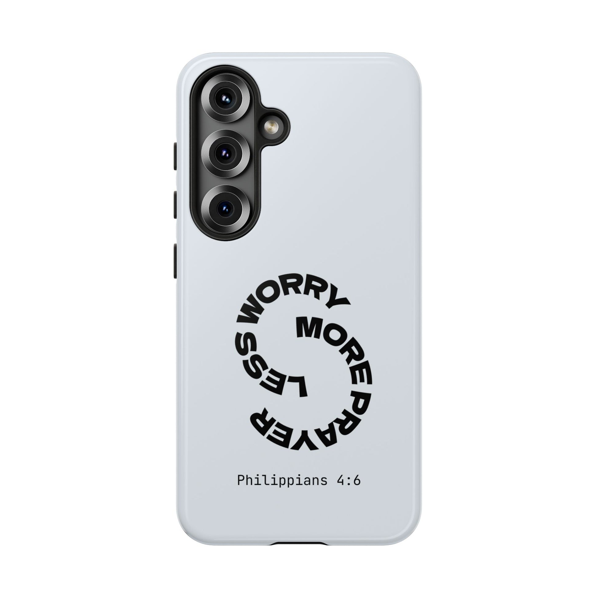 "Do not be anxious about anything, but in every situation, by prayer and petition, with thanksgiving, present your requests to God." — Philippians 4:6. This bold, modern design interrupts your scrolling to remind you: worry changes nothing, but prayer changes everything.