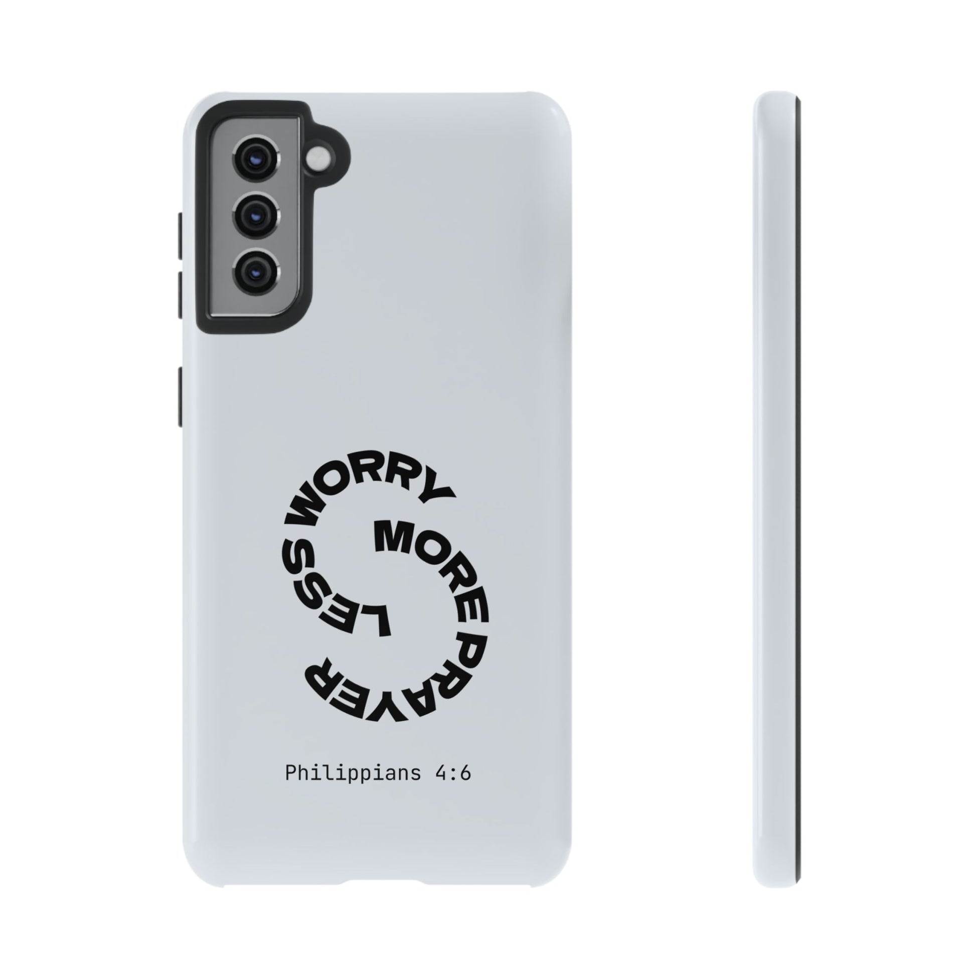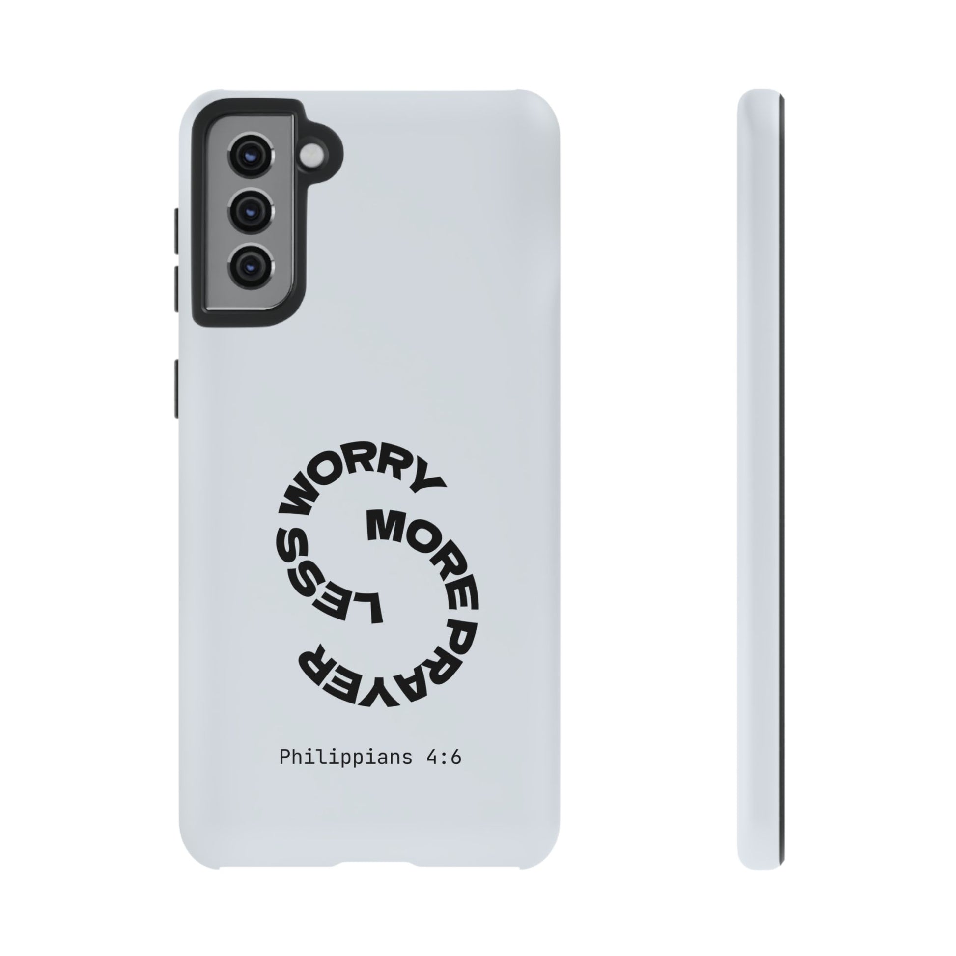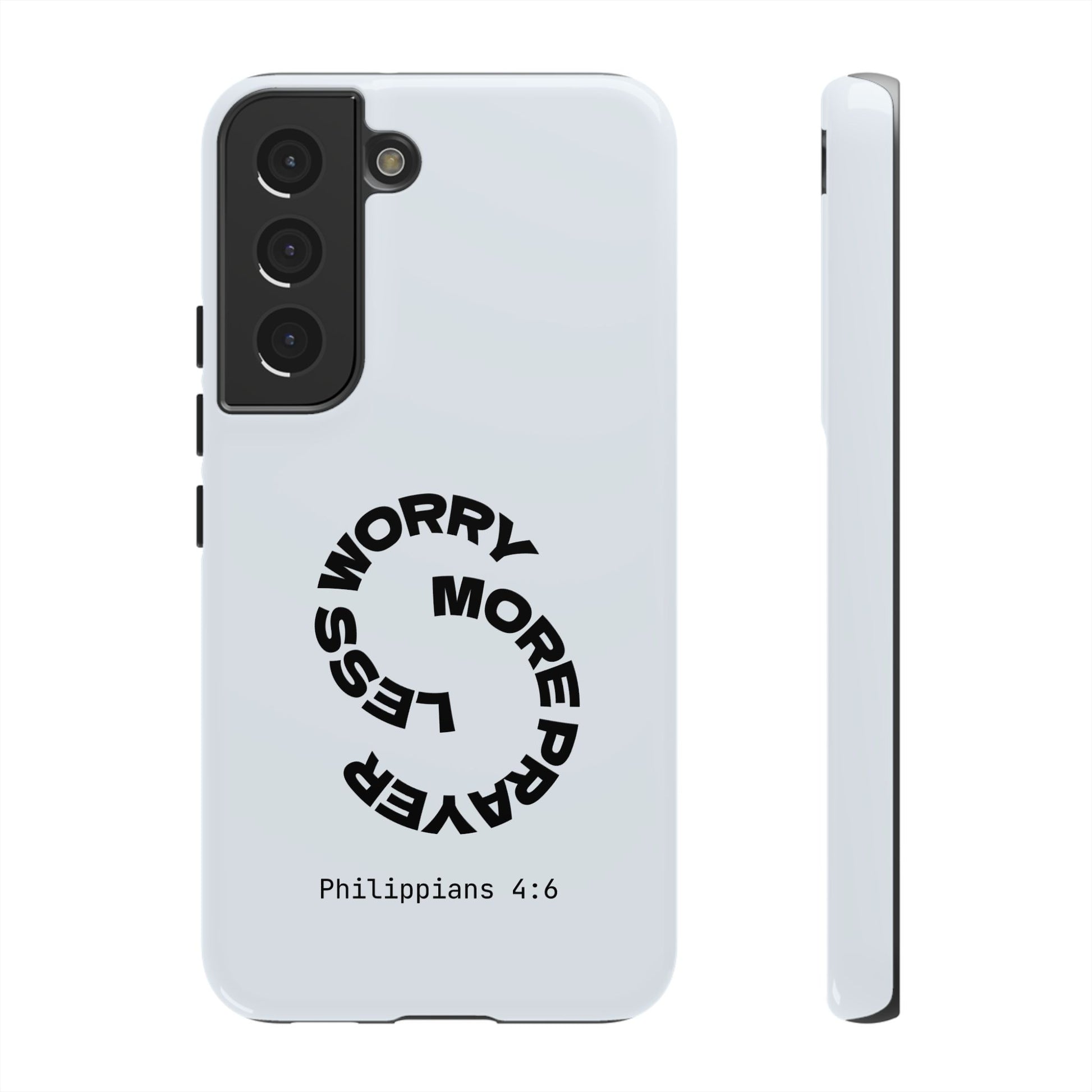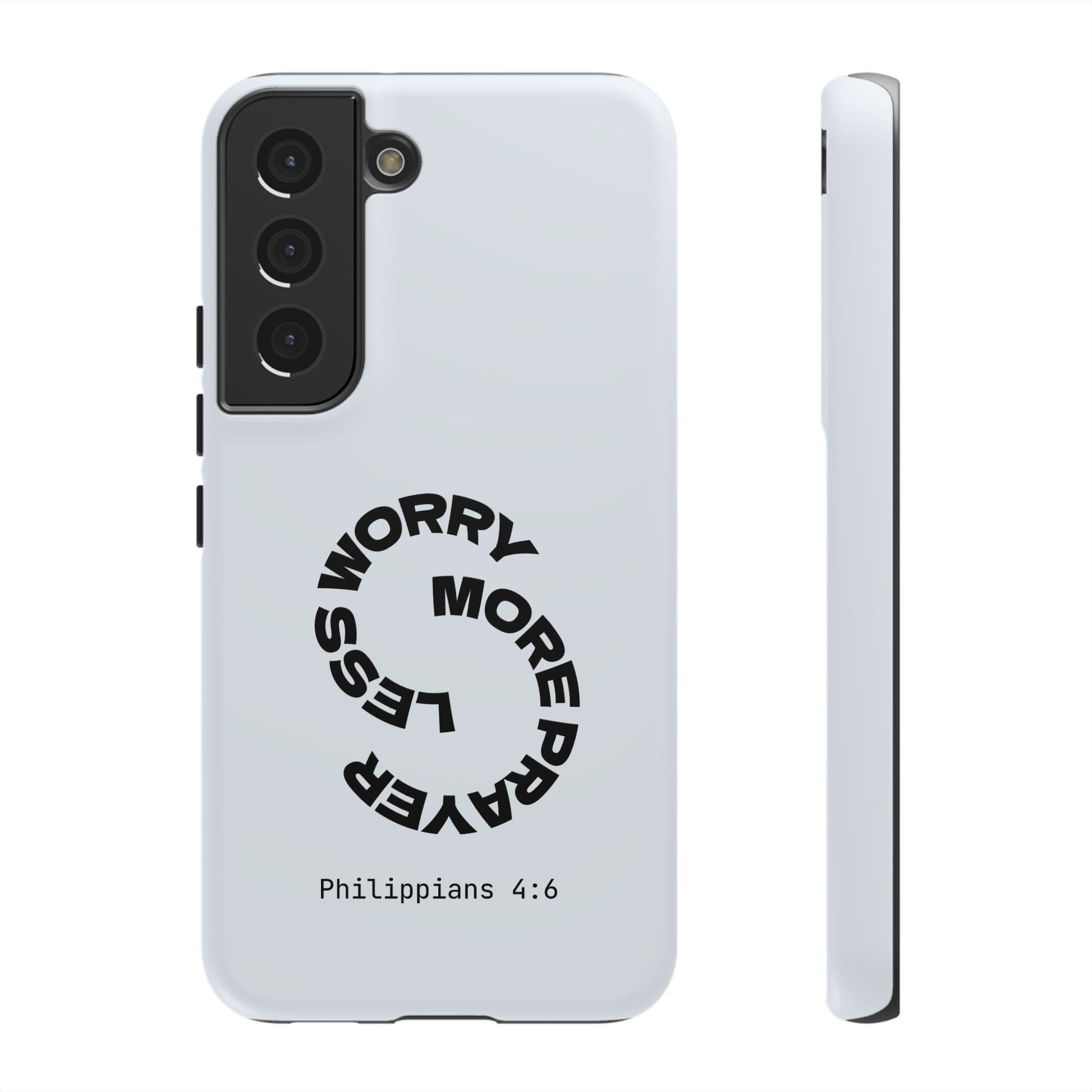 "Do not be anxious about anything, but in every situation, by prayer and petition, with thanksgiving, present your requests to God." — Philippians 4:6. This bold, modern design interrupts your scrolling to remind you: worry changes nothing, but prayer changes everything.